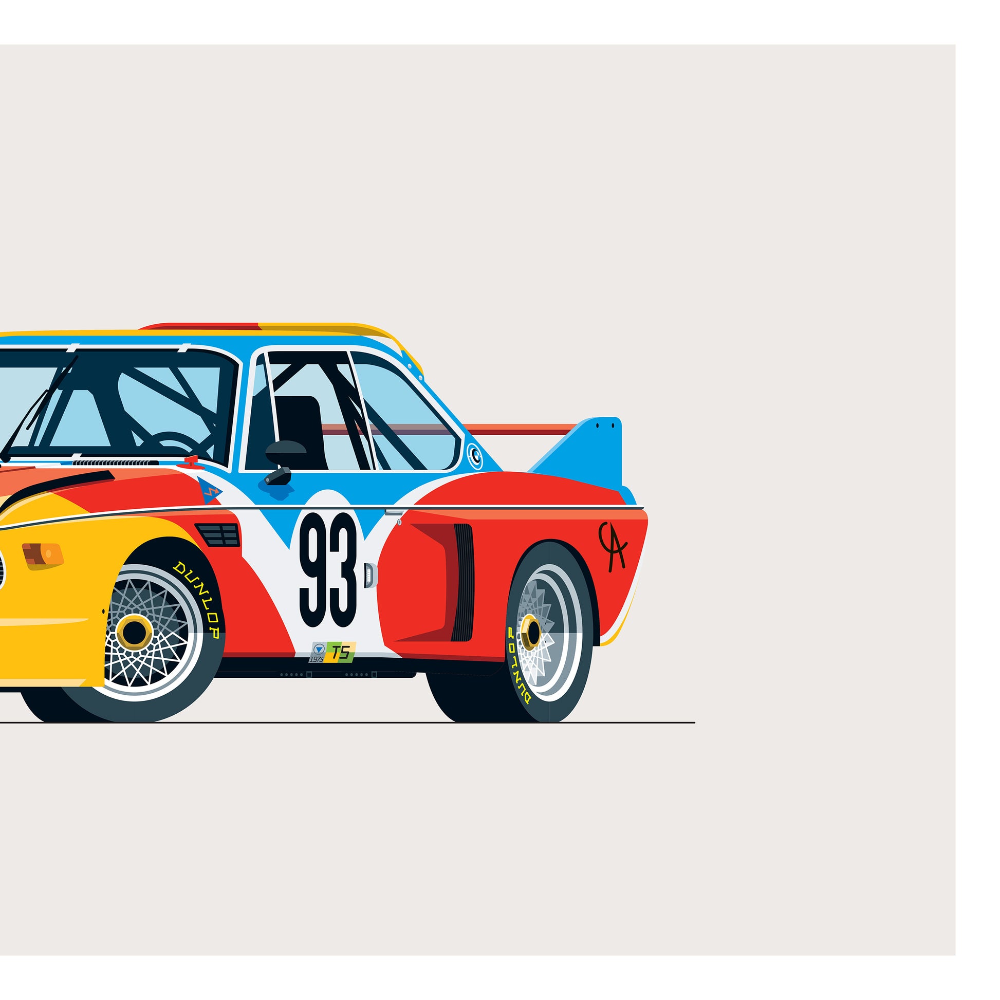 This limited-edition, pigment print depicts the 1974 BMW 3.0 CSL, Alexander Calder Art Car.